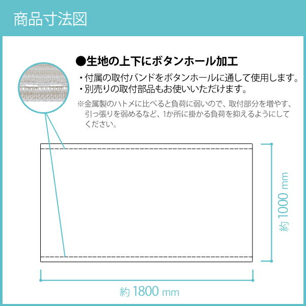取付け簡単 生地の両端にボタンホール加工が施されているので、取り付けには付属の取付バンドをご使用ください。