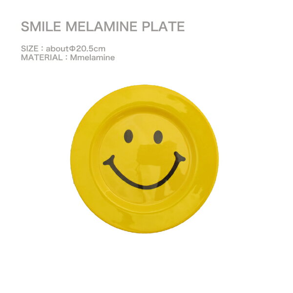 spec :スマイルメラミンプレート SIZE:aboutΦ20.5cm MATERIAL:メラミン 耐熱/耐例温度:120℃/-20℃ info:スマイルメラミンプレート アメリカンなスマイルフェイスがポイントのお皿です。