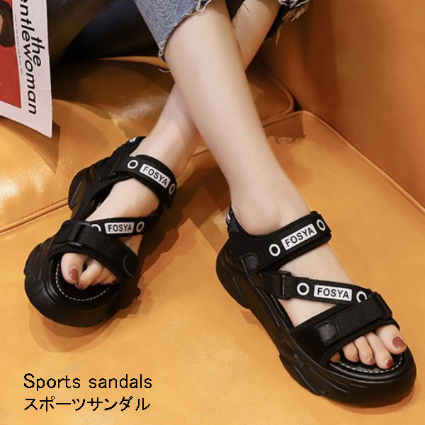 スポーツ サンダル レディース (厚底 ベーシック サンダル) [大人 オープントゥサンダル スポサン サンダル 歩きやすい コンフォート サンダル] 夏 新作 黒 ブラック 22E11145